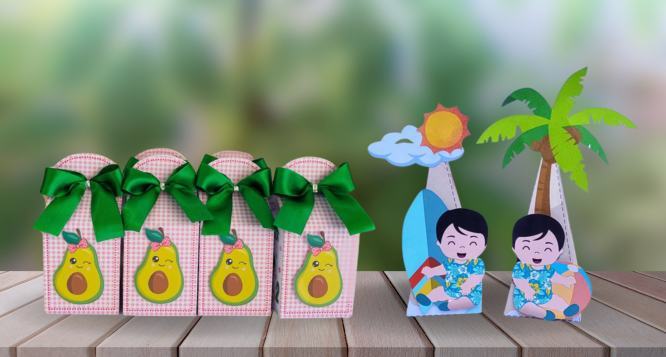 - Os itens do kit poderão ser personalizados com desenho (personagem), frases a escolha do cliente, fotos dos aniversariantes, nome da criança e idade;