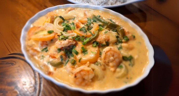 - A Moqueca é preparada com um toque caseiro, combinando camarões suculentos com temperos aromáticos e um toque de leite de coco, tudo isso cozido lentamente para realçar os sabores. O arroz acompanha perfeitamente, garantindo uma refeição completa e deliciosa.