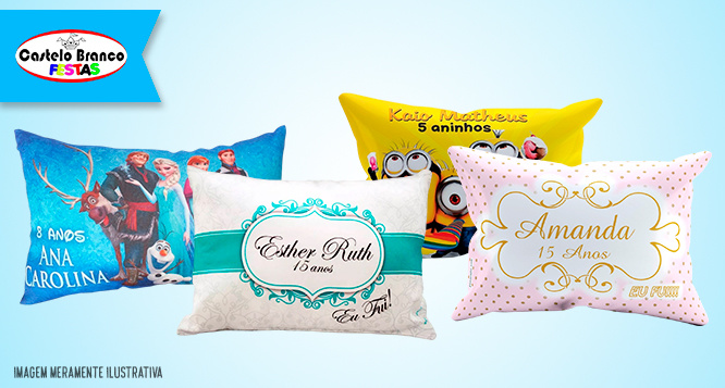 - Oferta dá direito a Kit com 10 Almofadas Personalizadas (20×30cm) na Castelo Branco Festas;