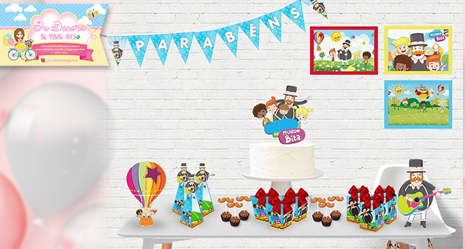 • Oferta dá direito a Kit Comemore em Casa: 10 bandeirolas + 3 posters tamanho A4 + 2 personagens de mesa + 10 topper para docinhos + 1 topper simples para bolo + 9 caixas com aplique 3D (itens vazios) + Brinde: 4 mini sacolinhas e 4 lápis personalizados na Ju Decora;