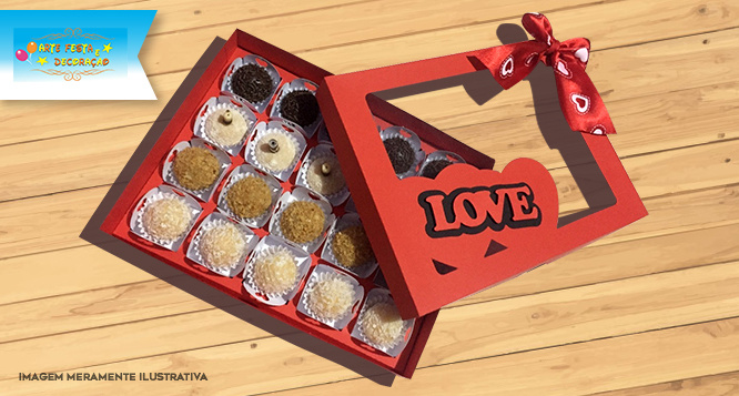 Para o dia dos namorados! Caixa com 20 Docinhos (02 sabores) na Arte Festa