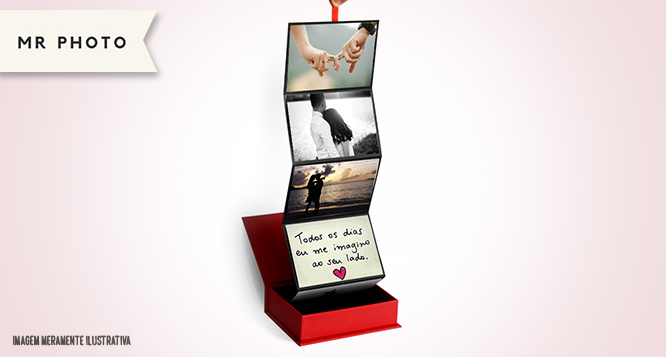 - Oferta dá direito a Caixa Personalizada em Mdf (10×10cm) + fotos sanfonadas (8,5×8,5cm) no MrPhoto;