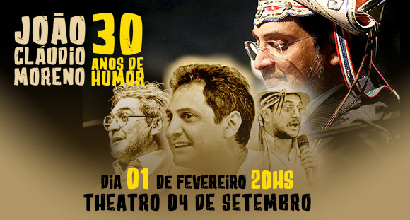 • O ano de 2019 já marca um dos momentos mais especiais da carreira de um dos maiores artistas brasileiros da atualidade, João Cláudio Moreno. Nesta temporada completa nada menos do que três décadas de carreira! São 30 anos divertindo, impressionando, encantando, fazendo emergir pertinentes considerações acerca dos temas mais diversos e relevantes da nossa existência e, claro, homenageando, com absoluta maestria, a outros tantos gênios da nossa cultura por meio de um dos seus dons mais proeminentes, o da imitação.