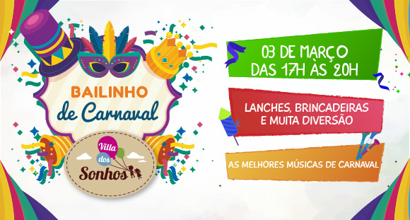 - Aqui o carnaval já começou. Leve os pequenos para entrar nessa folia! 01 Ingresso Individual para o Baile de Carnaval da Villa dos Sonhos, de R$80,00 por R$49,90, dia 03/03/2019, de 17h às 20h.