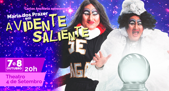 • Com mais de 20.000 mil espectadores pela turnê oficial no Nordeste, Maria dos Prazer, do ator Carlos Anchieta, retorna com a comédia “A Vidente Saliente”.