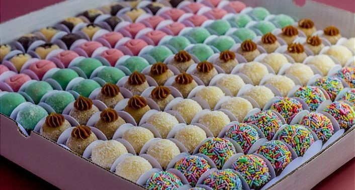 - Sabores dos docinhos: Brigadeiro tradicional, Amendoim, Morango, Maracujá, Casadinho, Sensação e Ninho;