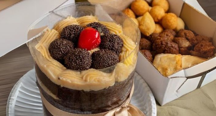 Kit Festa: 01 Bolo (serve 15 pessoas) + 100 salgadinhos + 1 Refrigerante 1L