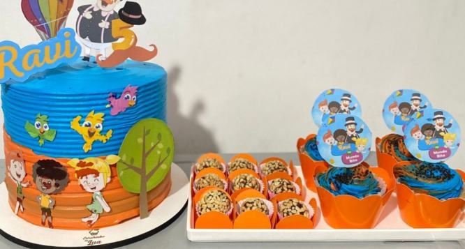 Kit Festa: 1 Bolo + 45 Brigadeiros Tradicionais + 6 Cupcakes + Topper de Bolo