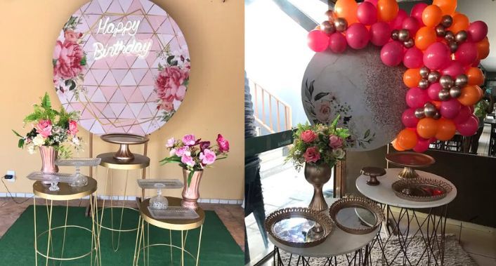 - Oferta dá direito a: Kit Festa: 3 Mesas de ferro + 1 Painel com tema (1x1m) + 1 Boleira + 3 Doceiras + 1 Jarro com flores OU buchinho na RM Eventos;